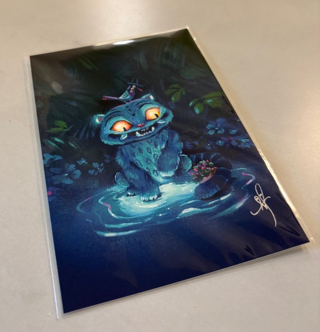 Also, I decided that when I read this book, I’ll use a Kpop Demon Hunters art print as the book mark! I believe I got this at the Los Angeles Comic Con convention last year.